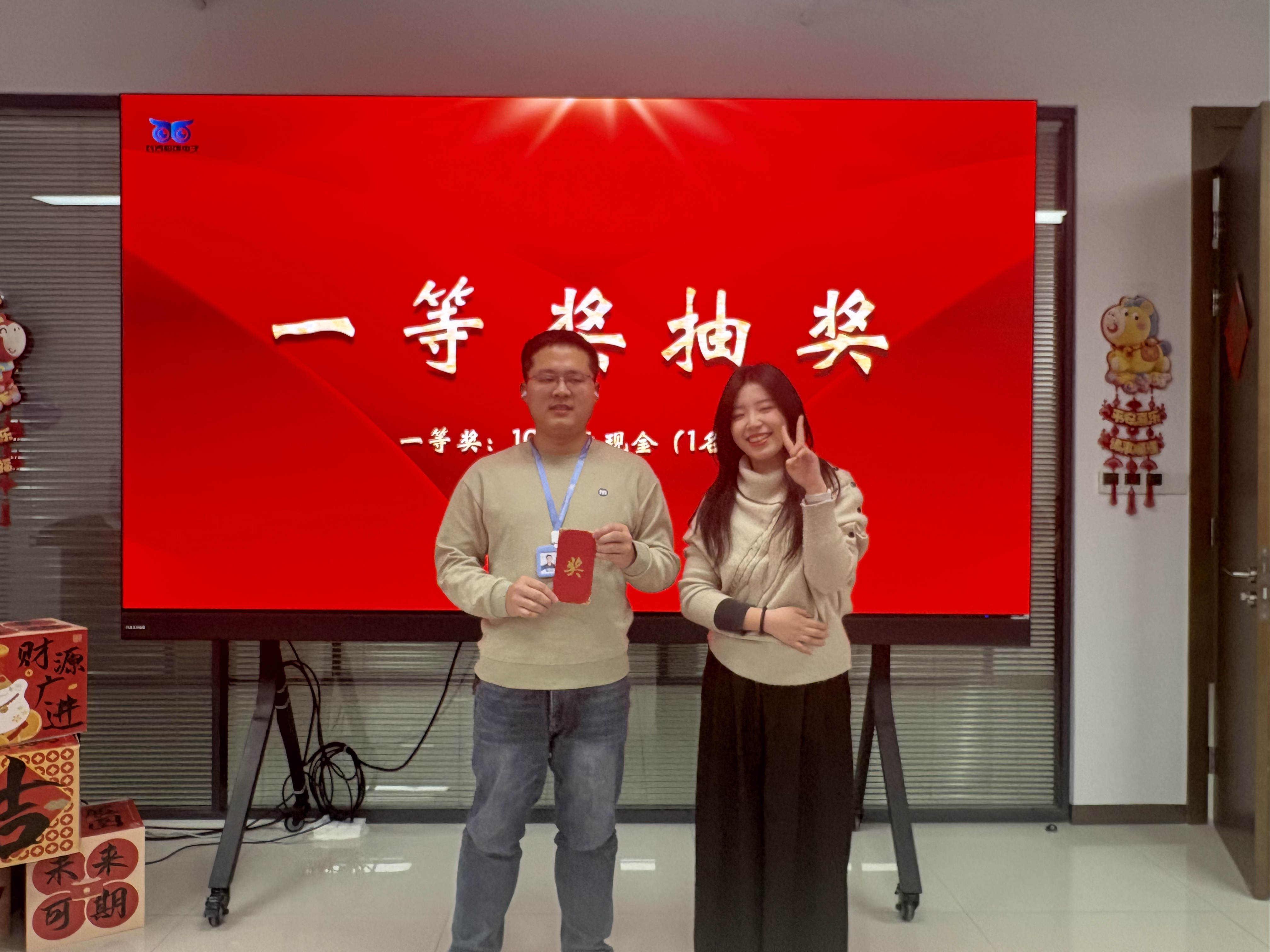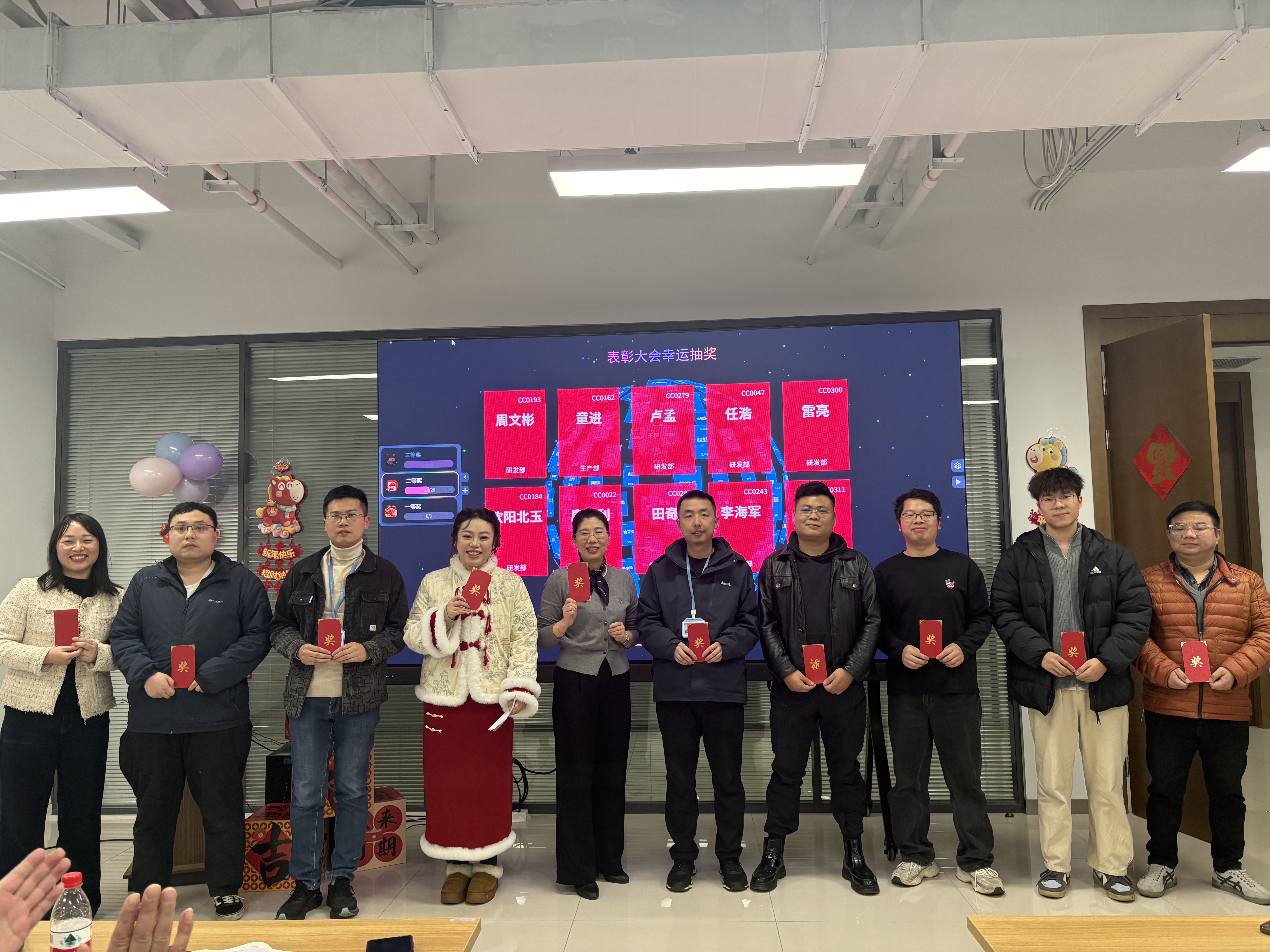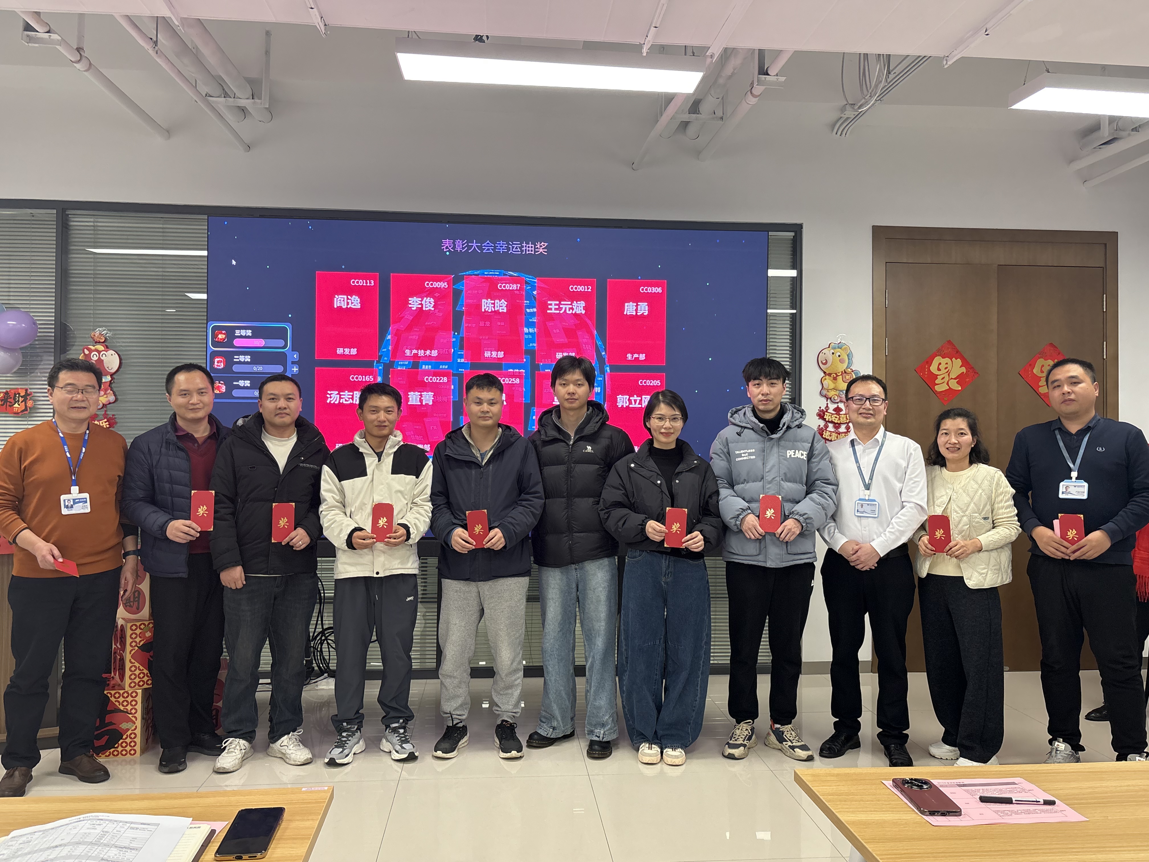 表彰树立典范,抽奖点燃热情。备受期待的抽奖环节将现场气氛推向高潮。大屏幕上名字滚动闪烁,每一位同事都满怀期待,欢声笑语中传递着浓浓的团队温情。