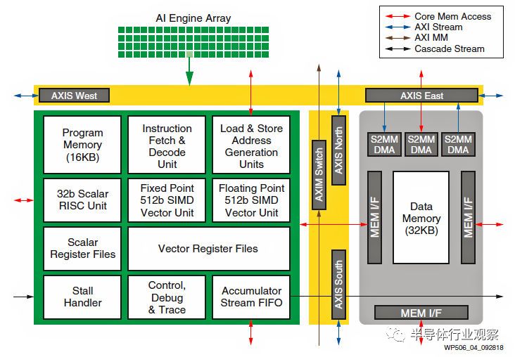 到了今天,随着FPGA目标人工智能市场,事实上又出现了之前同样的情况:不少用户希望用FPGA实现人工智能计算,但是FPGA实现人工智能计算的能力有限,而另一方面主流人工智能计算其实都相当规则,基本都是基于矩阵运算,因此Xilinx在ACAP的架构中主动加入了能灵活支持这类人工智能运算的硬核——AI Engine,从而希望能作为完整的系统支持人工智能计算,并慢慢从芯片厂商走向系统厂商。
